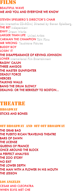 STUDIES: New York : Acting: Uta Hagen, Herbert Berghof, Steven Strimpell. Speech, Lynn Masters. Los Angeles: Master Class with Milton Katselas.